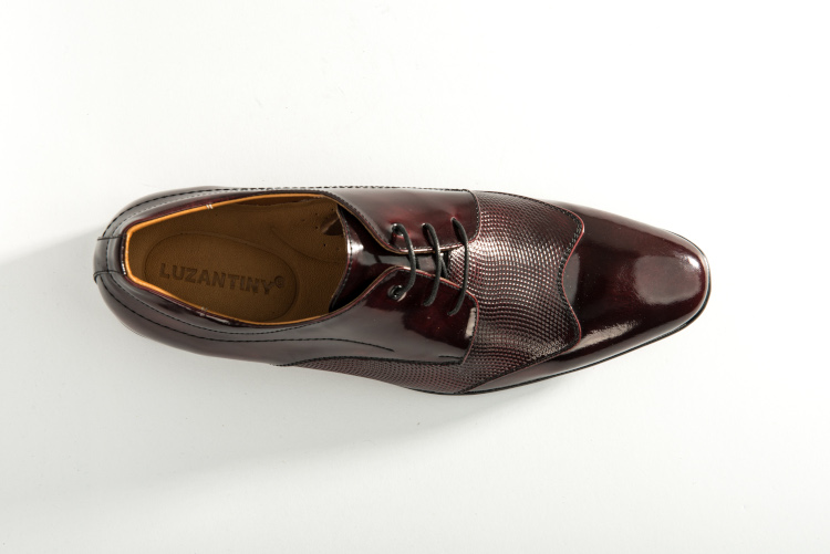 Zapato para hombre marca luzantiny, en elaborado con cuero riviera en color vino tinto.